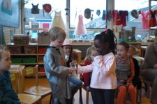 De klas is expressief. Er zijn twee kinderen, die het nog spannend vinden (nieuw op school), maar over het algemeen gaat het steeds luider, melodischer, gedurfder en origineler.