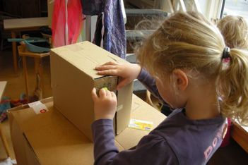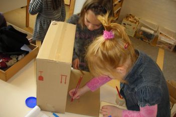 In de kring ging het gesprek met de oudsten verder over de ‘postwinkel' die de kinderen wilden maken. Er werden dingen bedacht die de kinderen in de postwinkel wilden. Een kassa, een pinautomaat, kaarten om te verkopen, poster voor in de winkel. Er werden in kleine groepjes plannen gemaakt. Er werd een kassa met pin gemaakt, het winkeltje is gemaakt en moest een zonnescherm krijgen.De jongsten gingen zelf verder met postzegels en munten maken. Een groepje jongens bedacht om posters te maken. Ella heeft kaarten gemaakt, om in de winkel te verkopen. Ze hing er een prijskaartje aan. Alle kinderen zijn super geconcentreerd bezig geweest.