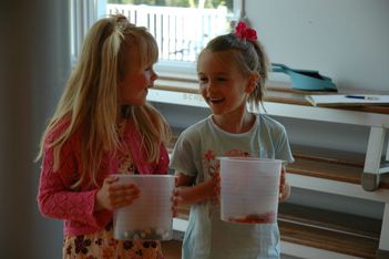 Het was mooi om te zien waar de kinderen allemaal geluiden mee konden maken. Het was ook heerlijk om die koppies te zien glunderen. Het was zo duidelijk te zien dat ze lol hadden.De tape die in het begin werd gepakt gaf een prachtig zacht geluid. Het was verrassend om te horen waar de kinderen die geluiden dan weer op vonden lijken: Het geluid van een dekbed of knikkers.De kinderen konden nu volop genieten omdat ze zelf de geluiden mochten zoeken en zelf mochten bepalen hoe ze die geluiden wilden brengen. Toch was het interessant om te zien dat ze naar een gezamenlijk ritme zochten en als Irma dit zachtjes op de djembe aangaf dan gingen ze gelijk heel enthousiast mee doen, maar op hun eigen manier.Elk kind had een andere voorkeur voor geluid. Het kon Ruby niet hard genoeg zijn en July zocht naar zachte bijzondere geluiden zoals het knippen of scheuren van papier.Je merkt gelijk dat als je de kinderen hun weg laat gaan, en jezelf niet te bang bent voor het overdonderende geluid, het heel goed gaat.
