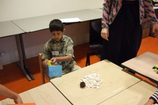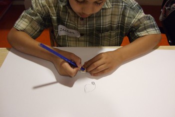 "Welke dingen zijn hetzelfde, of gelijk?" zachte dingen/harde dingendingen die rollenzwart/wituit de natuur Daarna hebben de kinderen hun verzameling getekend. Zubair: "ik teken een noot (naast de schelpen)." Mirjam: "Wat hebben ze hetzelfde?" Z.: "Komt uit de natuur." Johan: "Ik maak een weg waar de batterij op kan rollen." Johan legt zijn vel papier op de grond en wil daarop bouwen. Dat doet hij vervolgens.