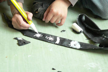 - Help, ik word lek geknipt! He, kijk, Dino tanden en vogelpoep..vuurpoep!