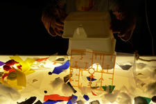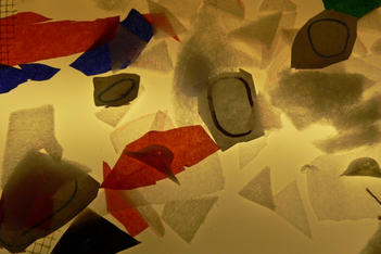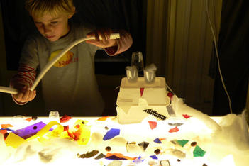 Vanochtend tijdens het bekijken van het beeld (foto's op beamer) van het lichthuis, onstond er een gesprekje over de reflectie van het lichthuis in de deur van de klas ernaast (deze is geblindeerd met zwart plastic).