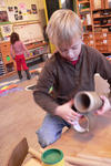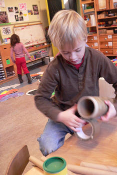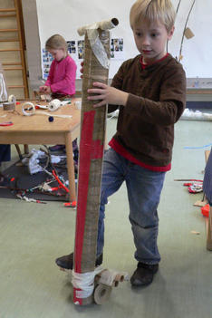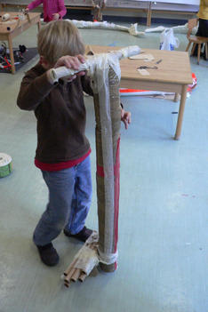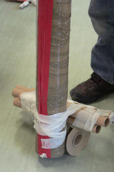 A: Het was heel moeilijk om te maken want je moet eerst al die rollen aan elkaar plakken en dan al die tape er omheen, ik heb hier vijf uur voor gewerkt