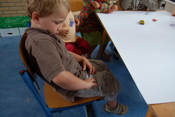 De anderen hebben niets in hun zak en kiezen wat uit de door ons neergelegde dingetjes van de spiegel: