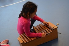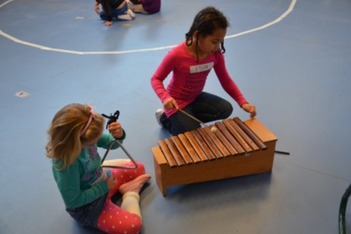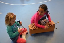 Isa speelt op de xylofoon. Lizanna gaat erbij zitten met een triangel. Ze spelen samen. Soms zegt Isa dat Lizanna even moet stoppen omdat ze zichzelf niet zo goed kan horen. Dan wordt er weer overlegd en iets afgesproken. Ze maken samen muziek, met duidelijke afspraken.