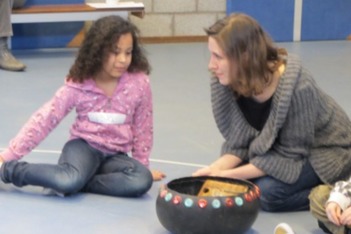 Aan het begin van de les leren de kinderen een Zimbabwaans mbira liedje. Het gaat over een ezel, een koe en een geit: “donghi mombe mbudzi”.