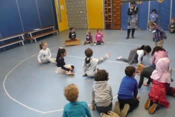 De kinderen zingen uit volle borst mee met het liedje. We gaan met z'n allen harder en zachter zingen, tot dat de muziek helemaal weg is.