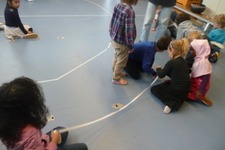 De kinderen waren helemaal geëngageerd in het spel. Ze bedachten alles zelf: de boerderij, wat er voor dieren waren en wat voor geluiden en bewegingen die maakten. Dat er hekken nodig waren, en wat er allemaal gebeurde op de boerderij.