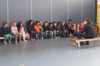 Het is bijna Pasen, daar hoort een Paasliedje bij. Daarom heeft juf Debby er één meegenomen.