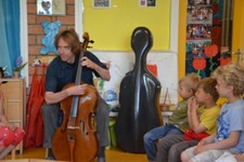De kinderen vinden het heel leuk dat er weer een muzikant op bezoek komt. Het is ook duidelijk te zien dat zij gewend raken aan de bezoekjes en al kennis hebben gemaakt met verschillende strijkinstrumenten. Ze weten er van alles over te vertellen en luisteren aandachtig.