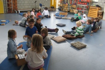 Vandaag hebben de kleuterklassen de hele ochtend cito toetsen. Daarom gaan we in de middag even heerlijk in de gymzaal muziek maken: lekker op instrumenten spelen en even de creatieve geest z'n vrije loop laten.