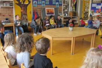 Aan het einde laten alle groepjes hun muziekstuk horen. We gaan allemaal zonder instrumenten in de cirkel zitten en elk groepje mag uit de cirkel om te laten horen wat ze hebben gemaakt. Het is geweldig om te horen dat elk groepje een echt muziekstuk heeft gemaakt.