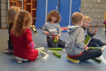 De kinderen waren heel erg bezig met het samenspelen, dat willen we graag verder uitbouwen. Hoe kun je dat organiseren? En hoe kun je samen beginnen en ook samen eindigen? Het was jammer dat we bij het voorspeelmoment niet meer zoveel tijd hadden, daardoor werden sommige groepjes een beetje afgekapt of hadden maar heel kort de tijd. Terwijl sommige kinderen zelf juist een heel duidelijk idee leken te hebben over het einde.