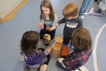 Het speellokaal werd een laboratorium van geluid en na een tijdje wilde ieder groepje graag laten horen wat zij ontdekt hadden.