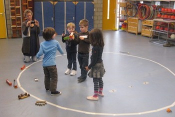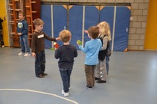Eerst staat Daliya te dirigeren. Rens wil ook heel graag en ze overleggen. Daliya vindt het prima om te ruilen. Rens gaat op in zijn rol als dirigent.