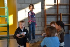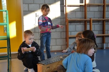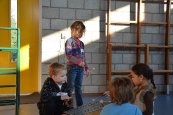 Doris zit een hele tijd met haar groepje rustig te spelen. Op een gegeven moment staat ze op en gaat dirigeren.