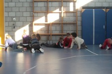 Eva Klee die vanuit Toeval Gezocht bij deze les mee keek deed het beeld heel erg denken aan jonge dieren, bijvoorbeeld tijgertjes, die met elkaar heel fysiek bezig zijn.