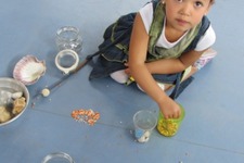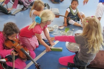 Het duo Anouk en Janna de L., en Faye, Janna vd S., en Daliya. Luce, die net nieuw is op school, zit ook bij de bomengroep.