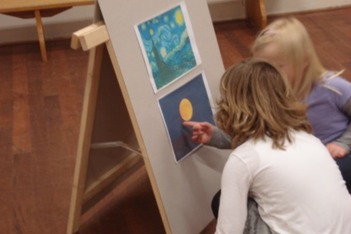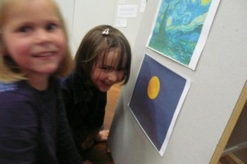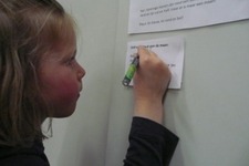 De kinderen gaan bij binnenkomst, zoals gebruikelijk is geworden, alle afbeeldingen in de ruimte bekijken. De audio van het lied van Petra gaat iets later aan dan gepland, de meeste kinderen zijn dan al binnen. Er wordt op de muziek gereageerd.