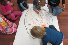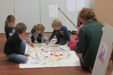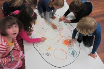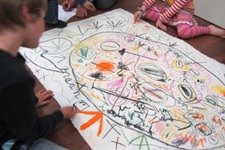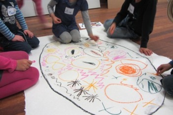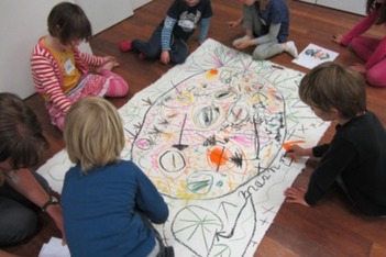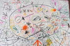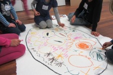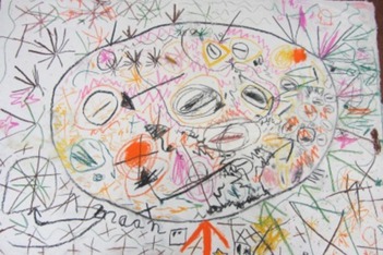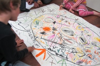 Opvallend is dat de kinderen, alhoewel ze gezamenlijk een tekening maken, toch hun eigen verhaal in het tekenen stoppen. Maud lijkt de situatie vanaf een afstandje te bekijken.