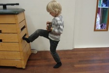 In het vrije spel maakt Koen een liedje: Liefje liefje liefje gaat het…hij zegt, in zichzelf, kom op! Even oefenen! Ik kan het ook alleen. Zo is het mooier!