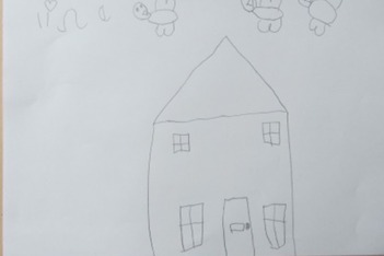 De vraag die we stellen is: 'teken de geluiden die je thuis kunt horen, zoals net toen we fantaseerden over thuis'.