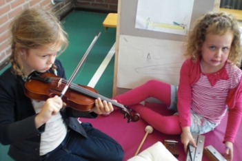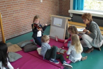 Het viel Juf Iet op, dat de kinderen tijdens het vrij spelen allemaal met hun eigen instrument bezig waren en bijna niet samenspeelden.