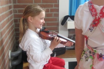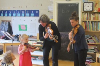 Evi staat te stralen in de klas, als ze muziek mag maken met de twee violistes. Later vraag ik aan haar hoe het was.