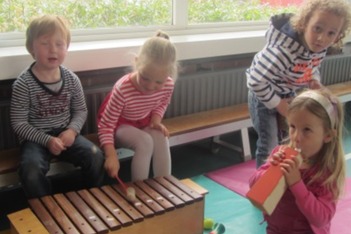 Het groepje heeft in het speellokaal moeite om een plan voor vandaag te bedenken. Als het stil wordt en iedereen even moet overleggen, maken ze toch een plannetje voor het optreden. Valentijn wil staand trommelen. Liv is de dirigent. Anna speelt viool en de rest begeleidt op de xylofoon.