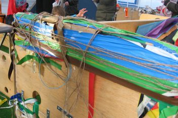 Van het plakband worden voorwerpen gemaakt, soms zijn het kadootjes voor elkaar, soms gewoon iets dat nog wat moet worden. De kasten van de bankjes worden ingepakt met verschillende soorten tape en touw.
