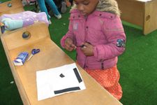 Regelmatig wordt er weer in geknipt alsof het te groot is geworden. Indy werkt rustig aan een voorwerpje.