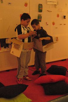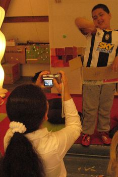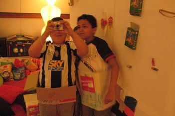 Ook de jongens maken foto's van elkaar. Dit gaat veel minder gestructureerd. Mo wil foto's maken en dat doet hij dan ook. Hij let niet goed op de instelling van de camera. Ze zijn niet duidelijk.
