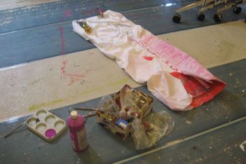 De jurk voor juffrouw Petra is nog steeds niet helemaal geschilderd.