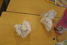 Ze zijn er haast de hele middag mee bezig geweest. Voor hen bleek het niet zo belangrijk te zijn, want plotseling waren ze verdwenen. Waarschijnlijk heeft Busra de hand in haar doos gedaan. Slechts twee anderen hebben we terug gevonden als een prop papier.