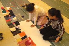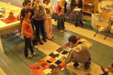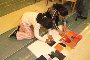 Ze zijn enthousiast bezig. Grote Ilham heeft het voortouw. Ze is voordurend aan het combineren welke vorm en kleur ze samenbrengt. Ze wil veel verschil in kleur en vorm aanbrengen. Vaak moet ik (Willem) even kijken wat ik er van vind.