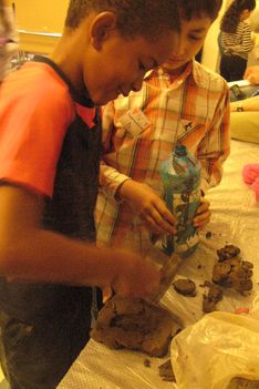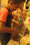 Chivaro en Nasreddine bouwen samen een zwembad. Chivaro heeft de leiding. Met een hamer bewerkt Chivaro een stuk klei om de vorm van een zwaebad er in te maken. De hoeveelheid klei is beperkt.