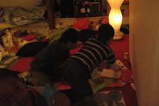 Nasreddine, Zi Lon, Aesma en Chivaro willen dit graag doen. Enthousiast verzamelen ze tekeningen en schilderijen voor dit doel. Al vlug haakt Aesma af. De drie jongens maken hun keuze en beginnen de werkstukken op te plakken. Ze willen dit "mooi" doen. Zi Lon heeft het na een keer plakken wel gezien en gaat iets anders doen. Nasreddine en Chivaro gaan bewust door met hun werk tot het "af" is. Ze zijn er een lange tijd, wel haast een uur, mee bezig geweest.