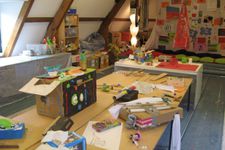 Vrijdag 19 juni is de laatste bijeenkomst van het Atelier. De kinderen helpen goed mee om het atelier er mooi uit te laten zien voor de ouders, die vrijdag komen kijken. Natuurlijk is het heel belangrijk dat ze ook hun werkstukken kunnen laten zien. Zorgvuldig wordt alles trots uitgestald en een mooie plaats gegeven.