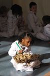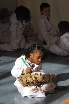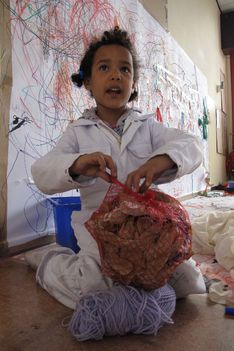 Ook wordt er vanalles gemaakt van plakband. Ashanty maakt een springtouw. De een wikkeld de ander in. Er worden ook grote proppen van gemaakt 'pruts' genaamd.