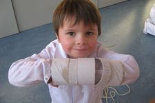 'Deze heb ik allemaal opgemaakt': zegt Roel, met lege plakbandrollen om zijn armen.