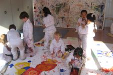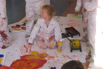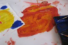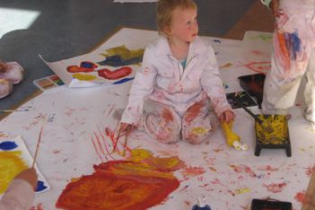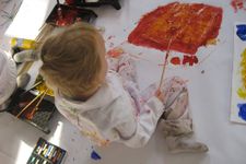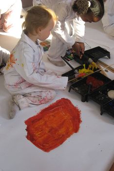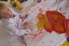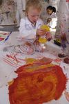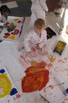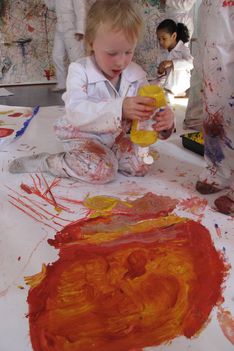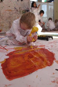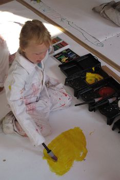Sophie zit heel erg geconcentreerd te schilderen. Ze laat zich niet afleiden door anderen.