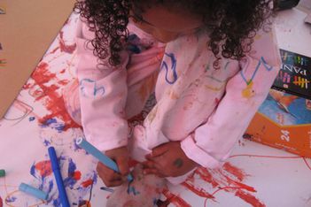 Verschillende meiden, waaronder Melisa en Felicia kleuren doelbewust hun overall.