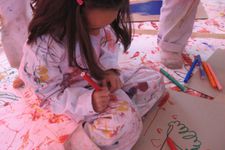 Meiden tekenen op de overalls
