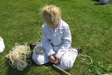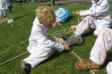 Paul maakt een vlag van zijn vishengel. Hij heeft namelijk leren knopen. Door heel veel draadjes aan zijn hengel te knopen, maakt hij een vlag.