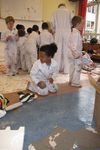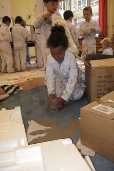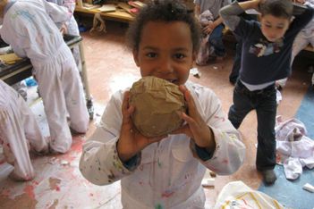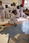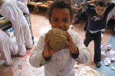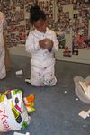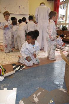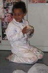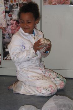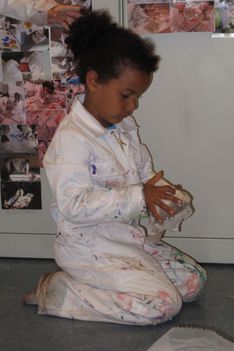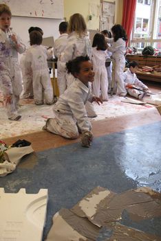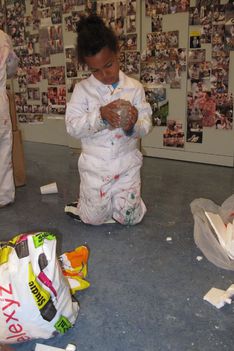 De vloer is nat. Sana begint het droog te maken met papieren handdoekjes. Sana neemt alle natte papieren handdoekjes en maakt daar een ronde bal van. De bal wordt steeds groter. Wanneer we vragen wat het is, vertelt ze: Het is een knikkerbal. Later wikkelt Sana plakband om de bal van natte handdoekjes. Ze zegt: Duw er eens op. Wanneer er op geduwd wordt, ontstaat er een deuk in de bal. De bal is zwaarder dan een bal van alleen maar plakband.