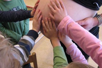 De moeder van Lois krijgt een baby, de kinderen zijn verbaasd hoe hard zo'n buik kan groeien en hoe groot ie wel niet wordt! Allemaal wilden ze even voelen.