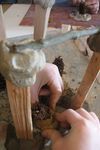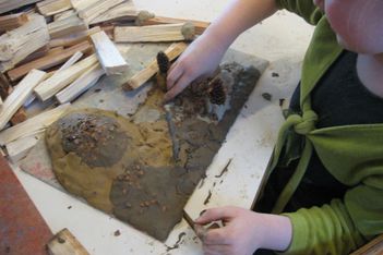Daniek ging met de techniek door van vorige week, die ze had gezien bij de jongens: ze zetten een hele grote stok in een klein stukje klei. Ze begreep als snel dat er meer klei moest komen, zodat op het laatst de stok blijft staan in de klei.