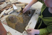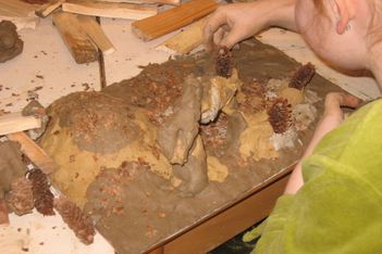Wesly wilde een beestje uit de klei halen van vorige week maar kwam verrast tot de ontdekkig dat het vast zat. Hij zei niks, maar zijn ogen spraken verbazing uit.