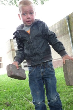 Tygo: dit wordt de deur, nu nog de ramen. dit is de kachel, lekker warm als het sneeuwt.