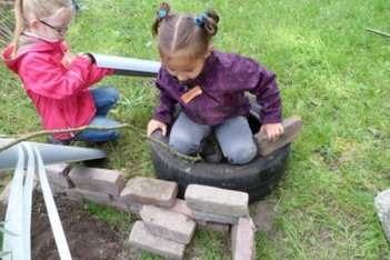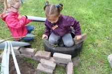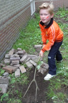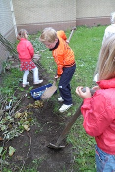 Syenna: we hebben klei gevonden. Sam: dan lijkt het wel cement.